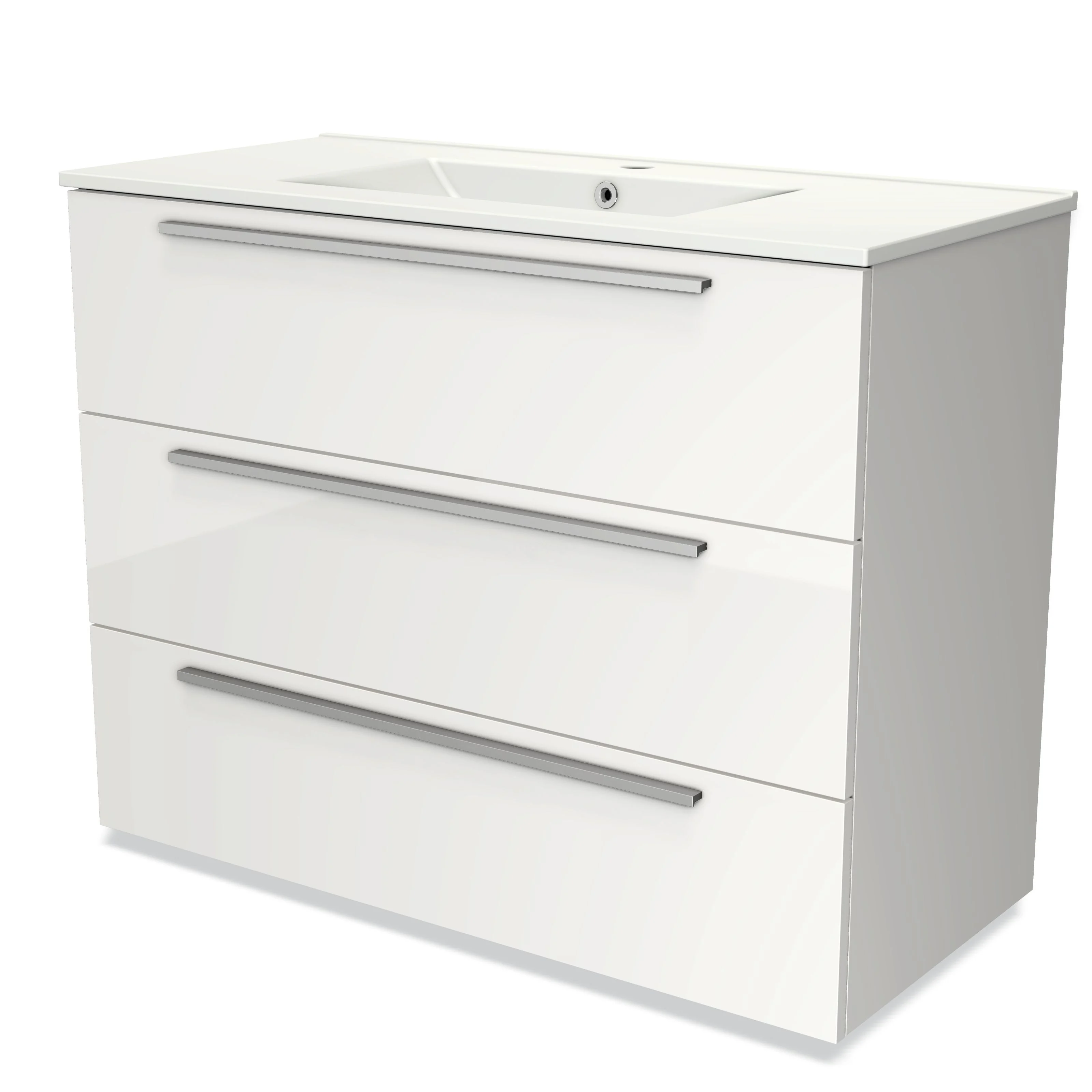 Modulo Waschtische | 100 cm Hochglanz Weiß Flach front Keramik 3 Schubladen