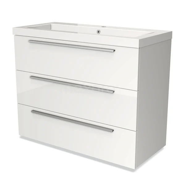Modulo Waschtische | 100 cm Hochglanz Weiß Flach front Mineralguss 3 Schubladen