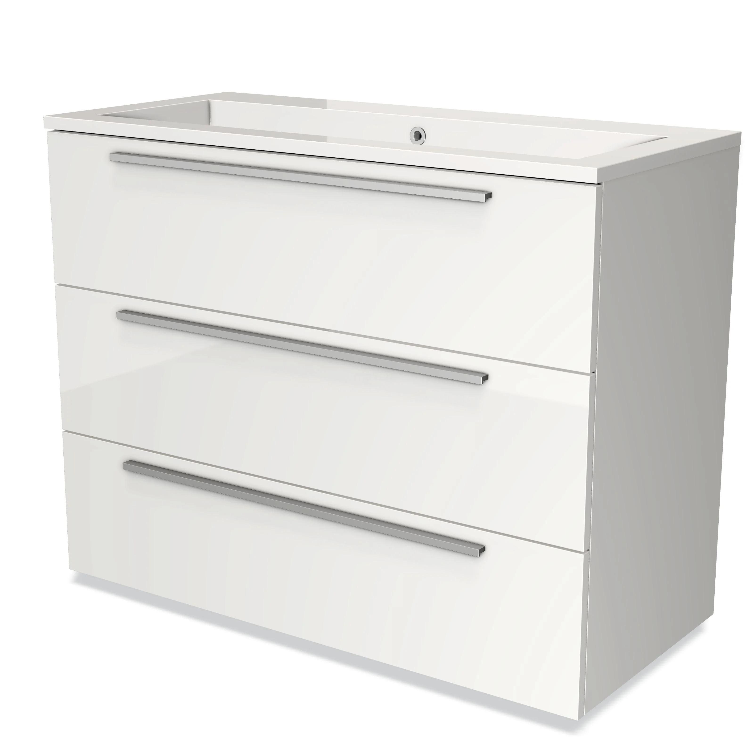 Modulo Waschtische | 100 cm Hochglanz Weiß Flach front Mineralguss 3 Schubladen