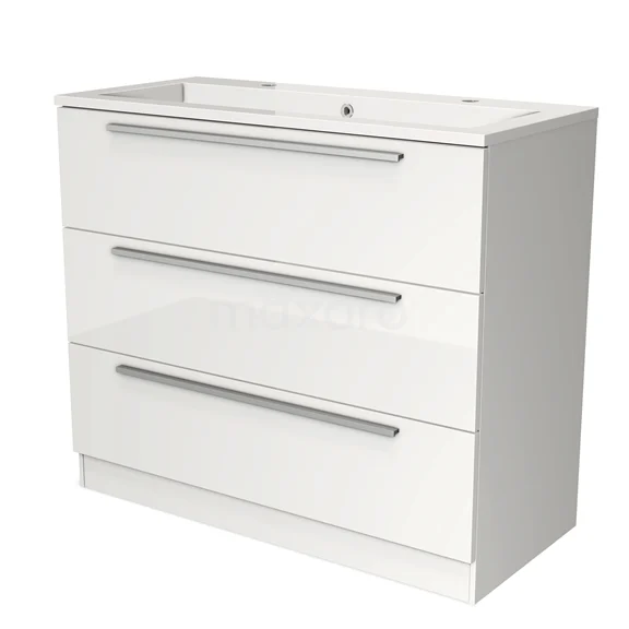 Modulo Waschtische | 100 cm Hochglanz Weiß Flach front Mineralguss 3 stehende Schubladen