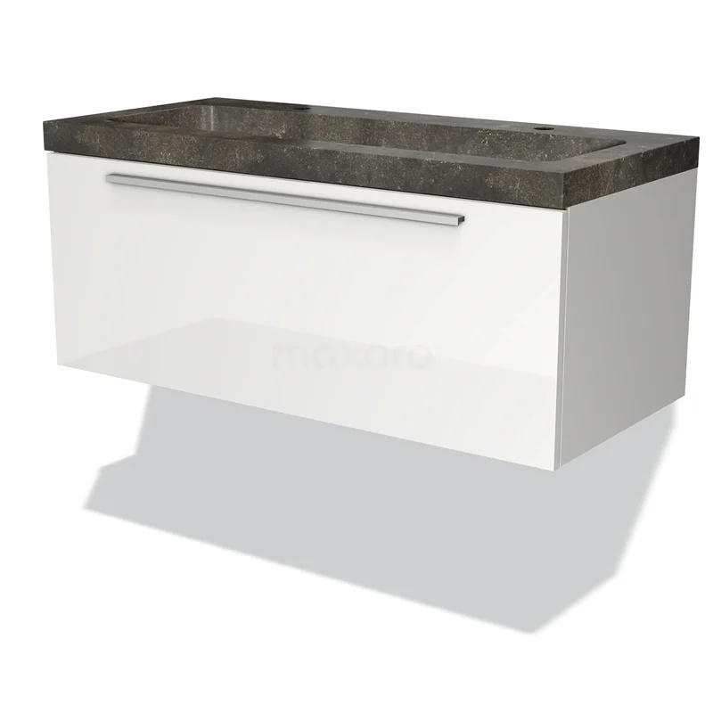 Modulo Waschtische | 100 cm Hochglanz Weiß Flach front Naturstein 1 Schublade