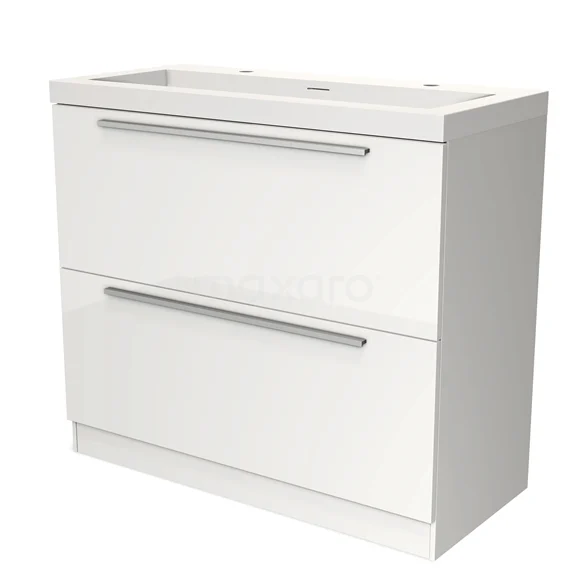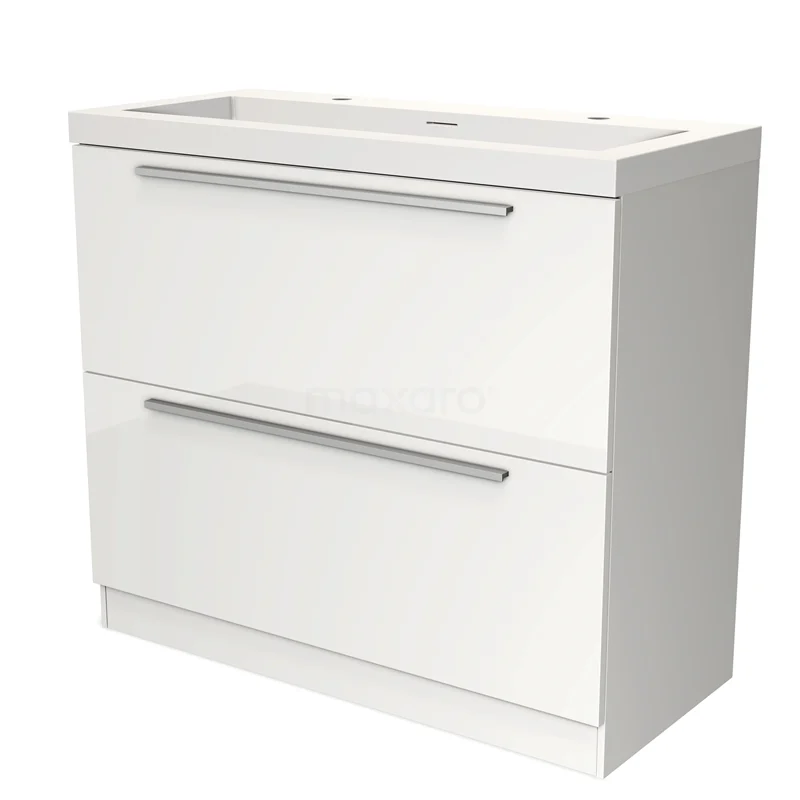 Modulo Waschtische | 100 cm Hochglanz Weiß Flach front Solid Surface 2 hohe Schubladen übereinanderliegend