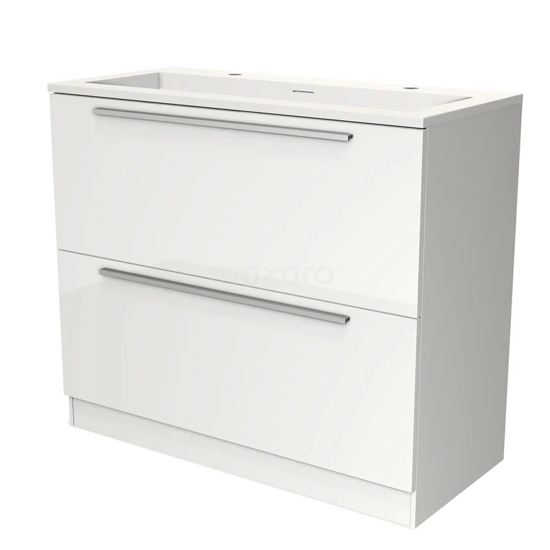 Modulo Waschtische | 100 cm Hochglanz Weiß Flach front Solid Surface 2 hohe Schubladen übereinanderliegend