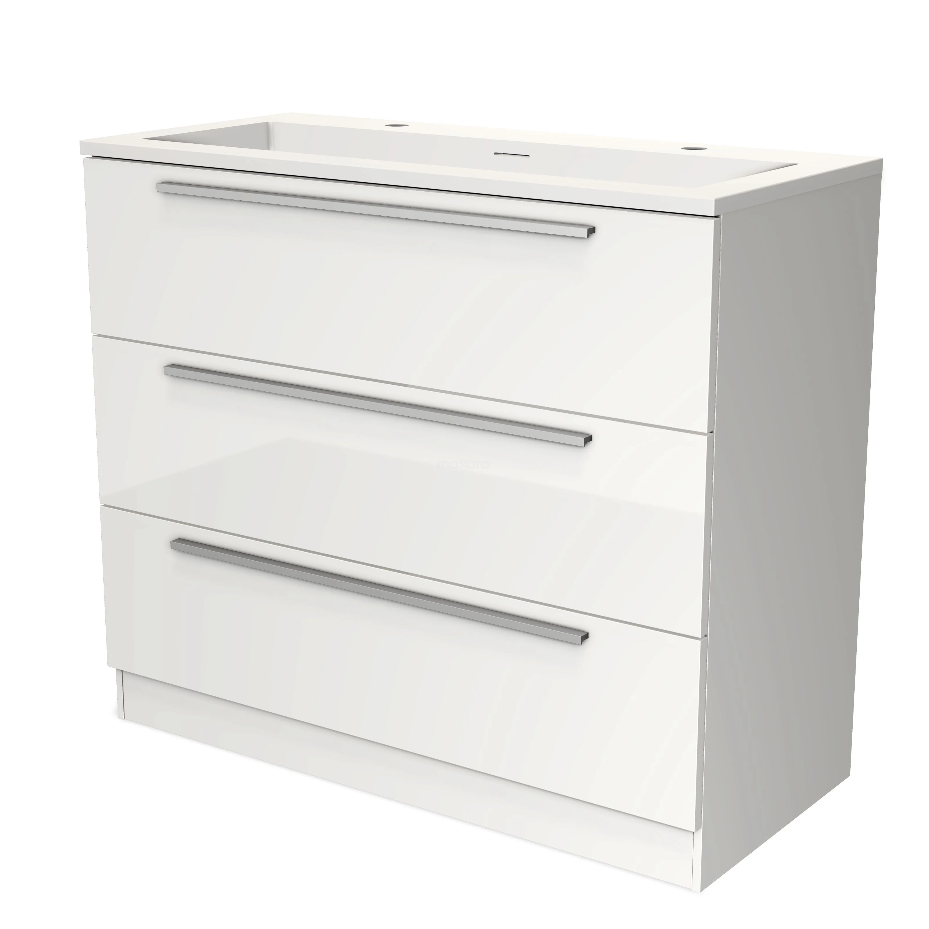 Modulo Waschtische | 100 cm Hochglanz Weiß Flach front Solid Surface 3 stehende Schubladen