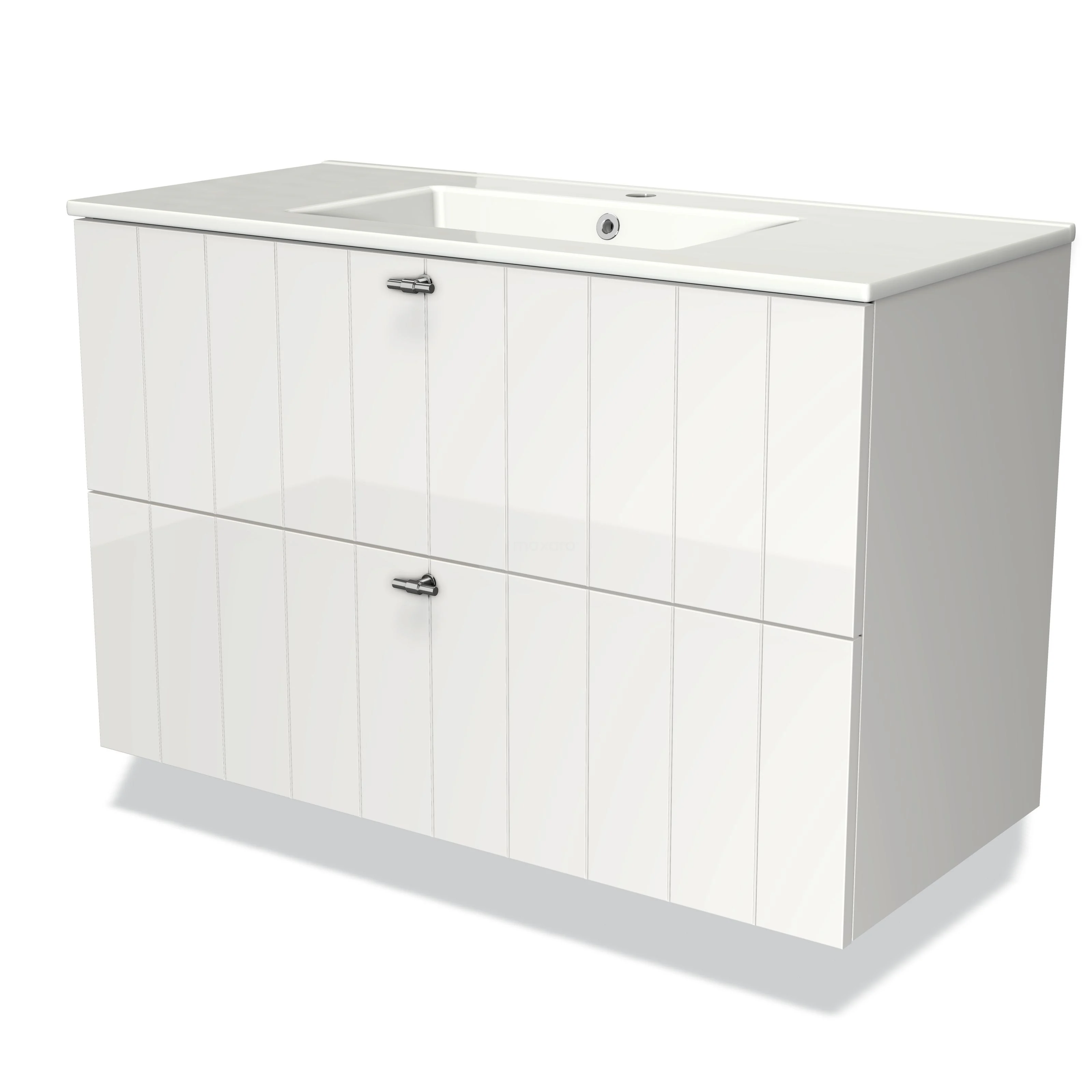 Modulo Waschtische | 100 cm Hochglanz Weiß Lamelle front Keramik 2 übereinanderliegende Schubladen