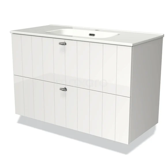 Modulo Waschtische | 100 cm Hochglanz Weiß Lamelle front Keramik 2 übereinanderliegende Schubladen