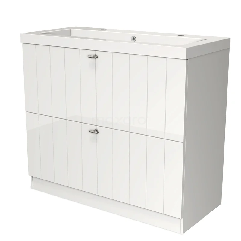 Modulo Waschtische | 100 cm Hochglanz Weiß Lamelle front Mineralguss 2 hohe Schubladen übereinanderliegend