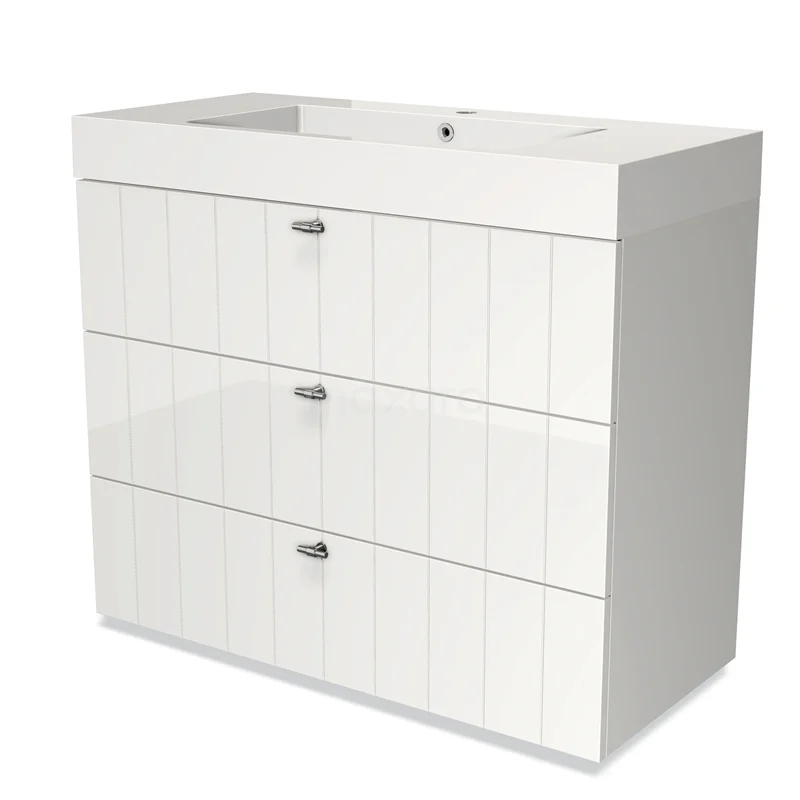 Modulo Waschtische | 100 cm Hochglanz Weiß Lamelle front Mineralguss 3 Schubladen