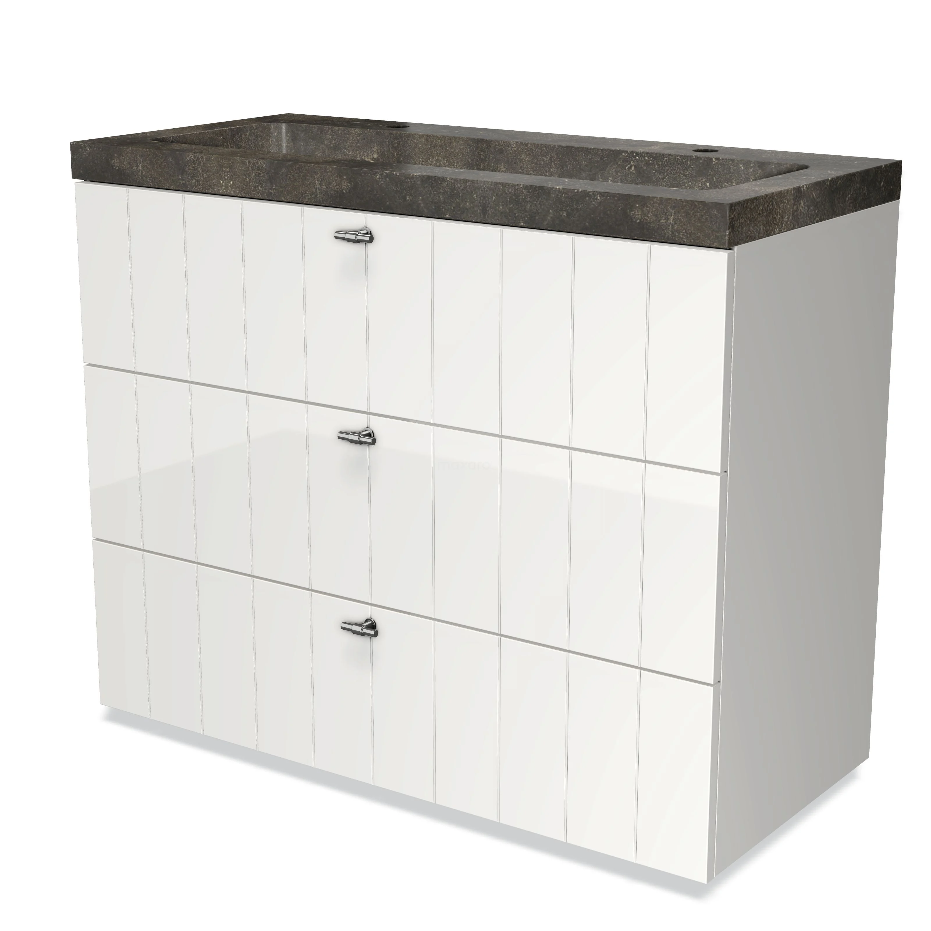 Modulo Waschtische | 100 cm Hochglanz Weiß Lamelle front Naturstein 3 Schubladen