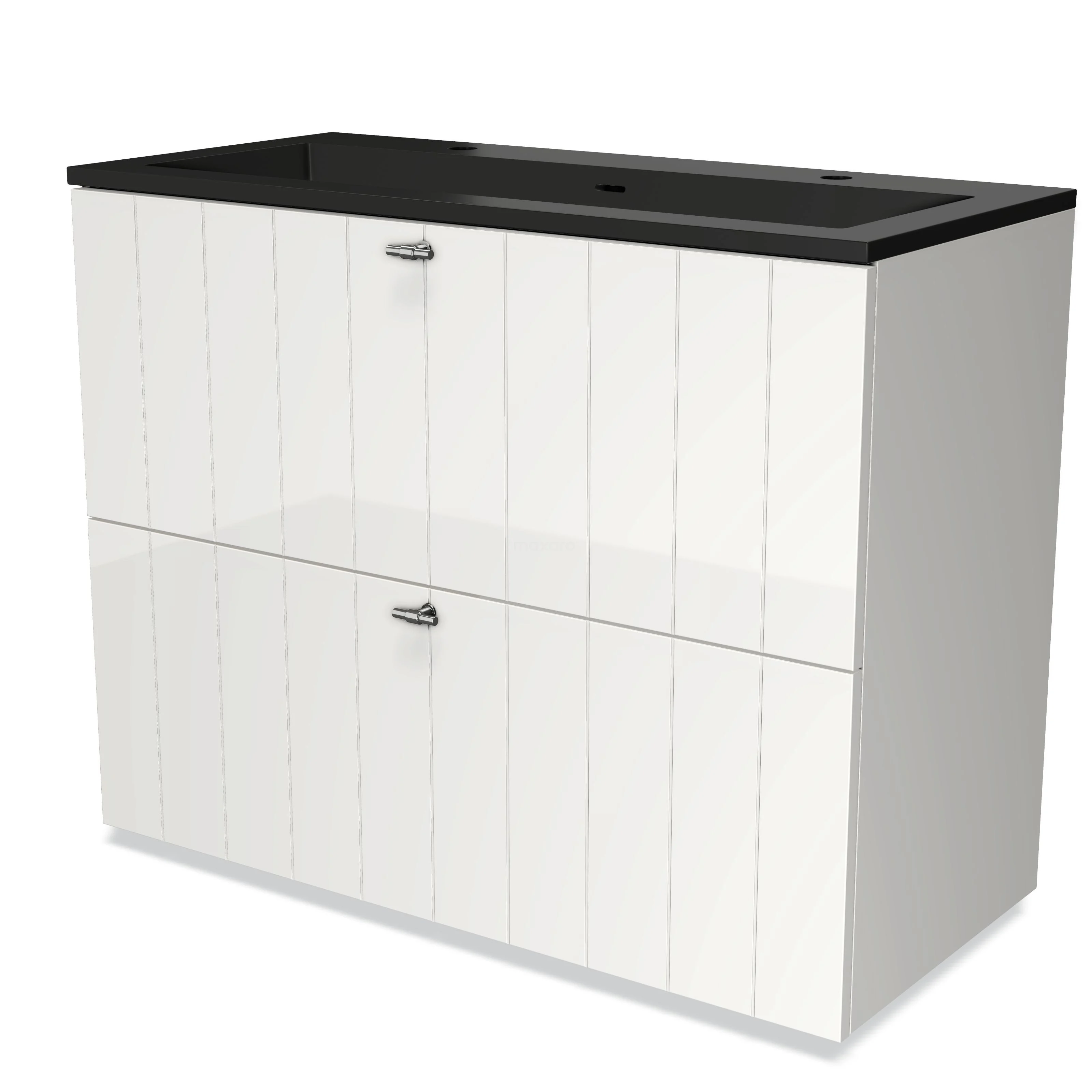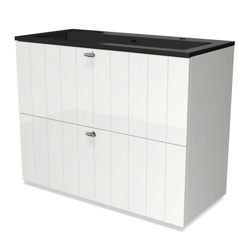 Modulo Waschtische | 100 cm Hochglanz Weiß Lamelle front Quarz 2 hohe Schubladen übereinanderliegend