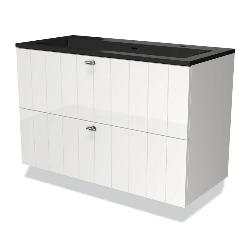 Modulo Waschtische | 100 cm Hochglanz Weiß Lamelle front Quarz 2 übereinanderliegende Schubladen