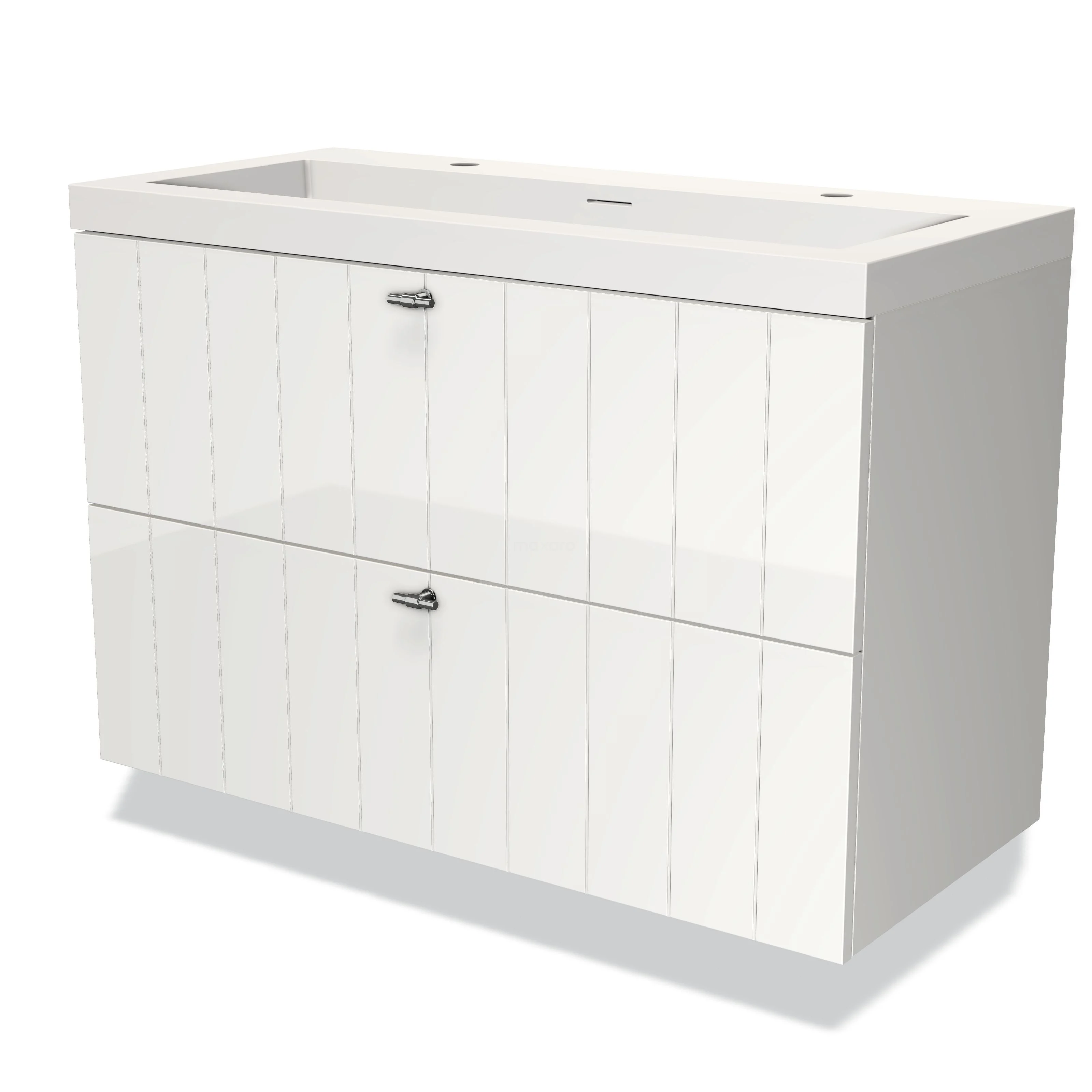 Modulo Waschtische | 100 cm Hochglanz Weiß Lamelle front Solid Surface 2 übereinanderliegende Schubladen