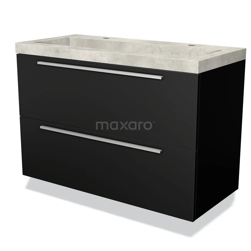 Modulo Waschtische | 100 cm Matt Schwarz Flach front Beton 2 übereinanderliegende Schubladen