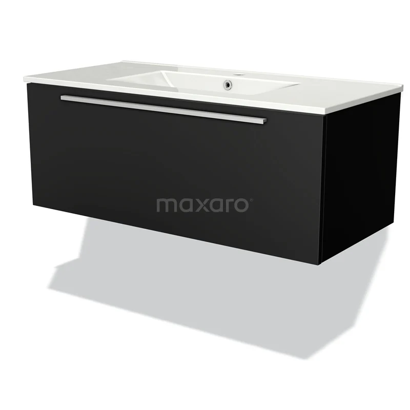 Modulo Waschtische | 100 cm Matt Schwarz Flach front Keramik 1 Schublade