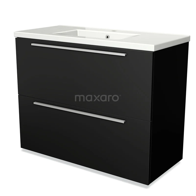 Modulo Waschtische | 100 cm Matt Schwarz Flach front Keramik 2 hohe Schubladen übereinanderliegend