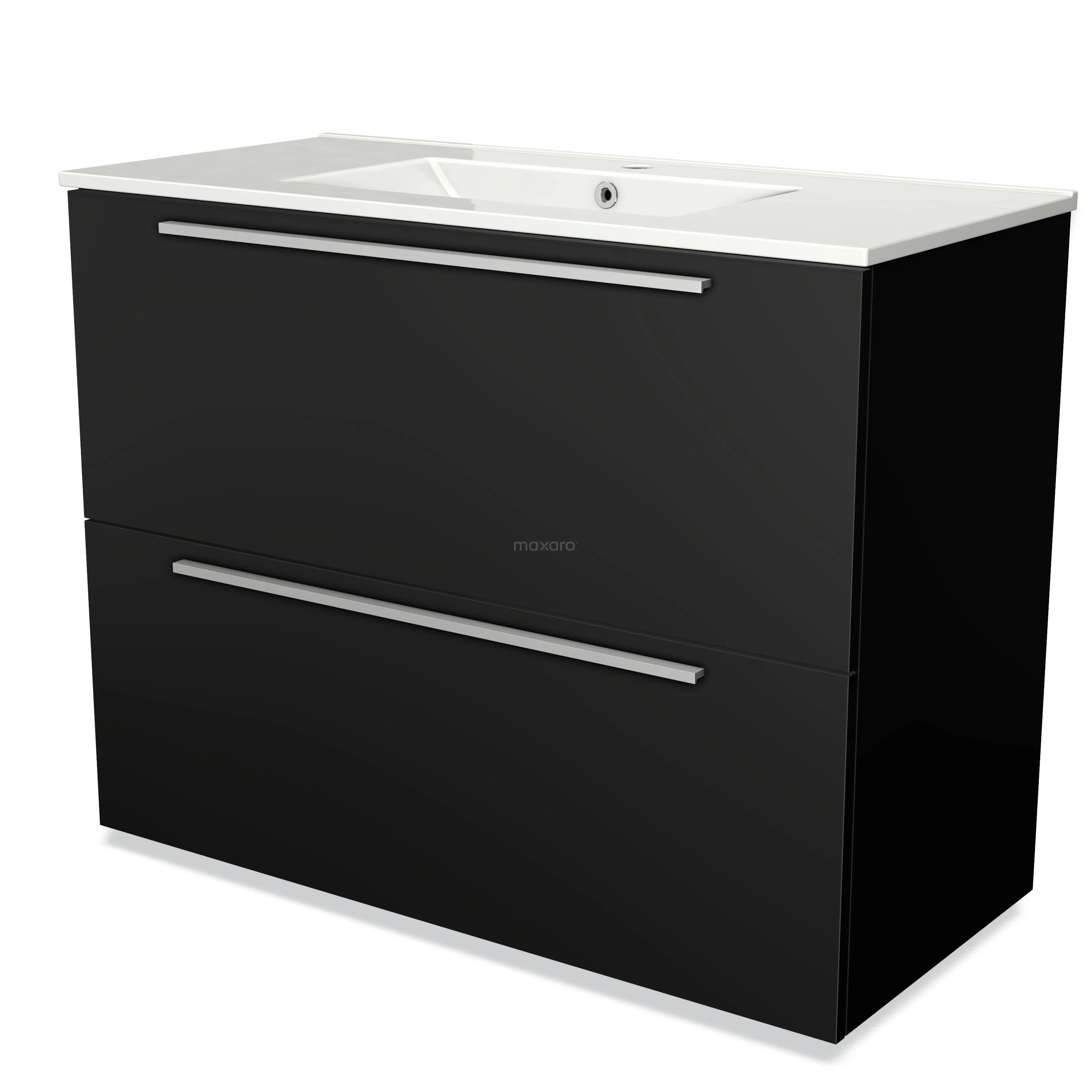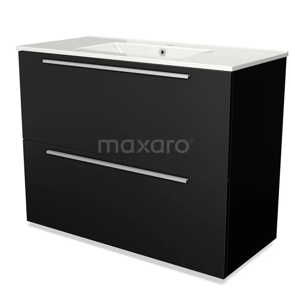 Modulo Waschtische | 100 cm Matt Schwarz Flach front Keramik 2 hohe Schubladen übereinanderliegend