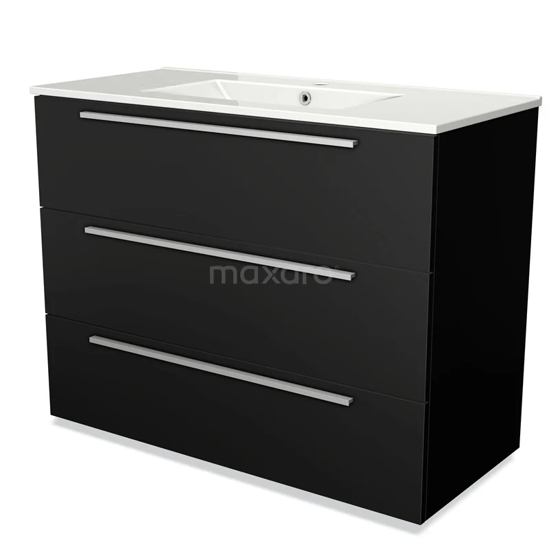 Modulo Waschtische | 100 cm Matt Schwarz Flach front Keramik 3 Schubladen