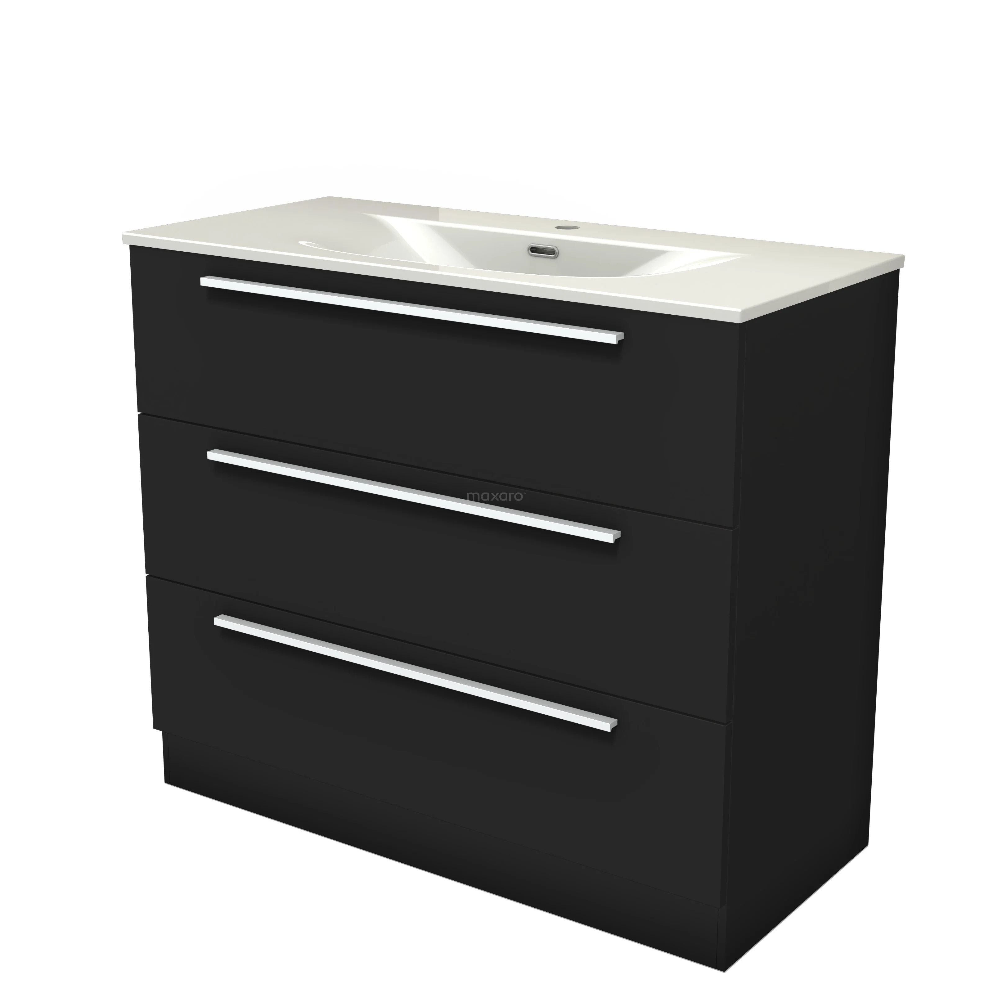Modulo Waschtische | 100 cm Matt Schwarz Flach front Keramik 3 stehende Schubladen
