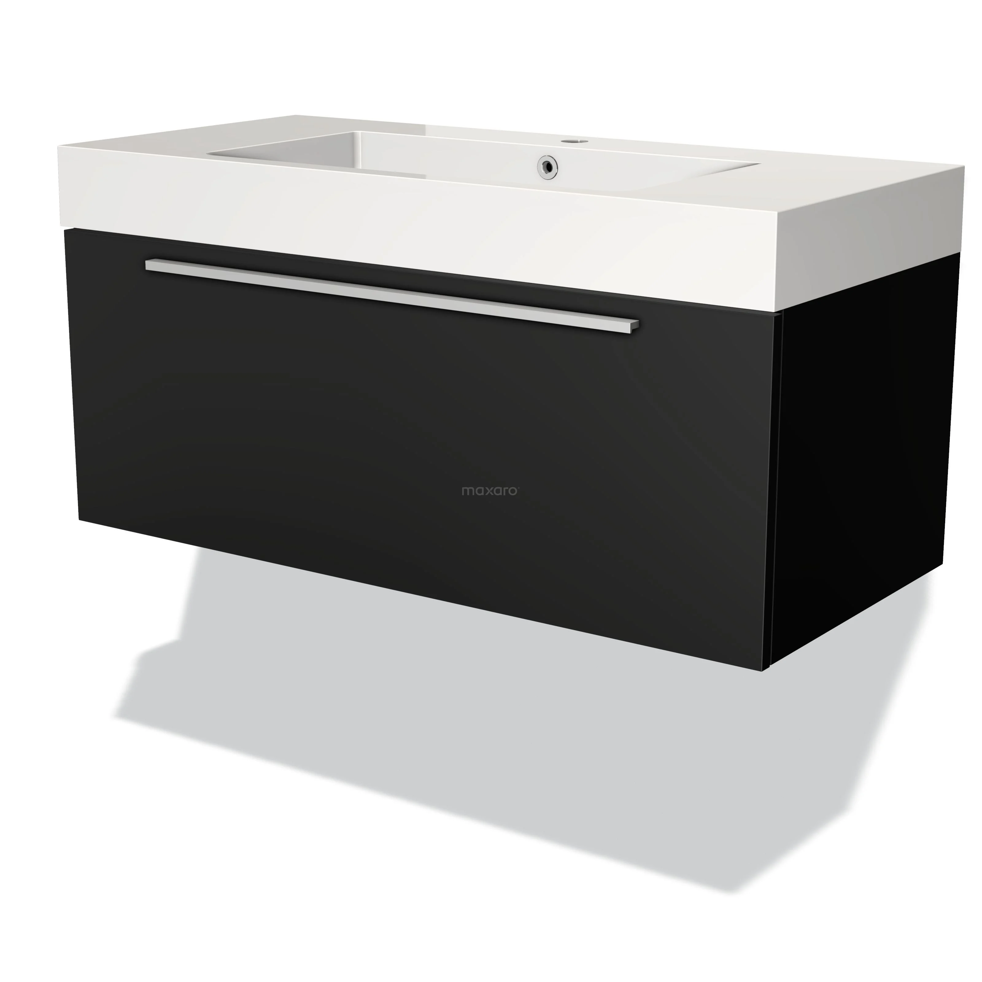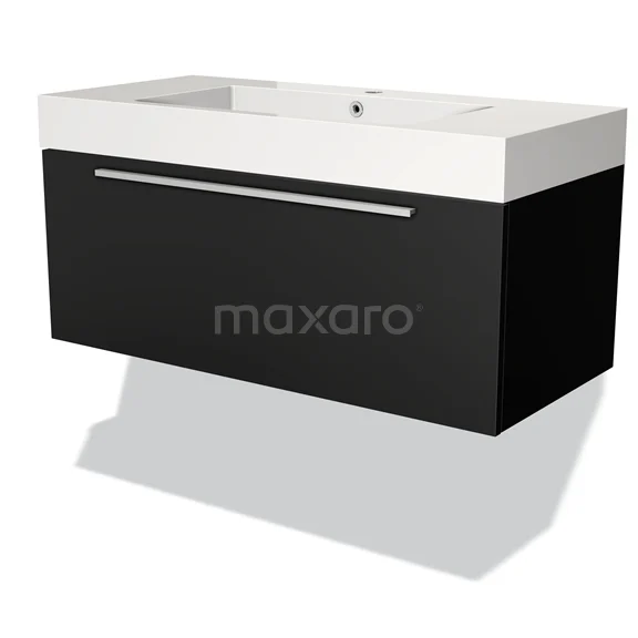 Modulo Waschtische | 100 cm Matt Schwarz Flach front Mineralguss 1 Schublade