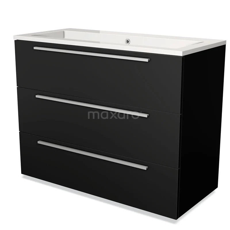 Modulo Waschtische | 100 cm Matt Schwarz Flach front Mineralguss 3 Schubladen
