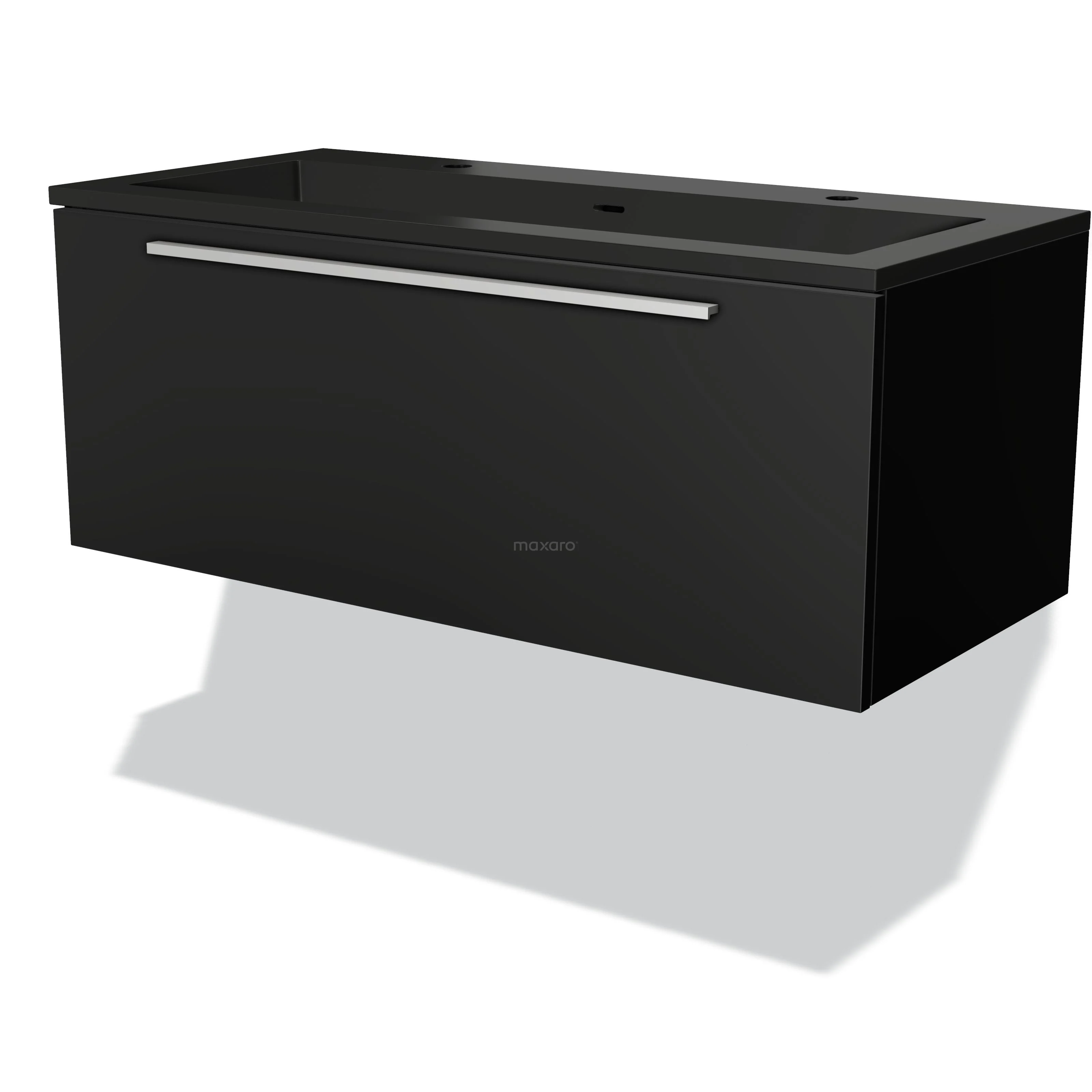 Modulo Waschtische | 100 cm Matt Schwarz Flach front Quarz 1 Schublade