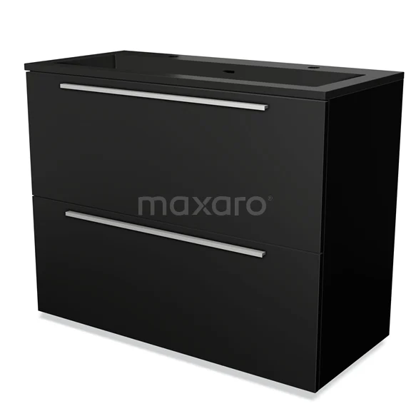 Modulo Waschtische | 100 cm Matt Schwarz Flach front Quarz 2 hohe Schubladen übereinanderliegend