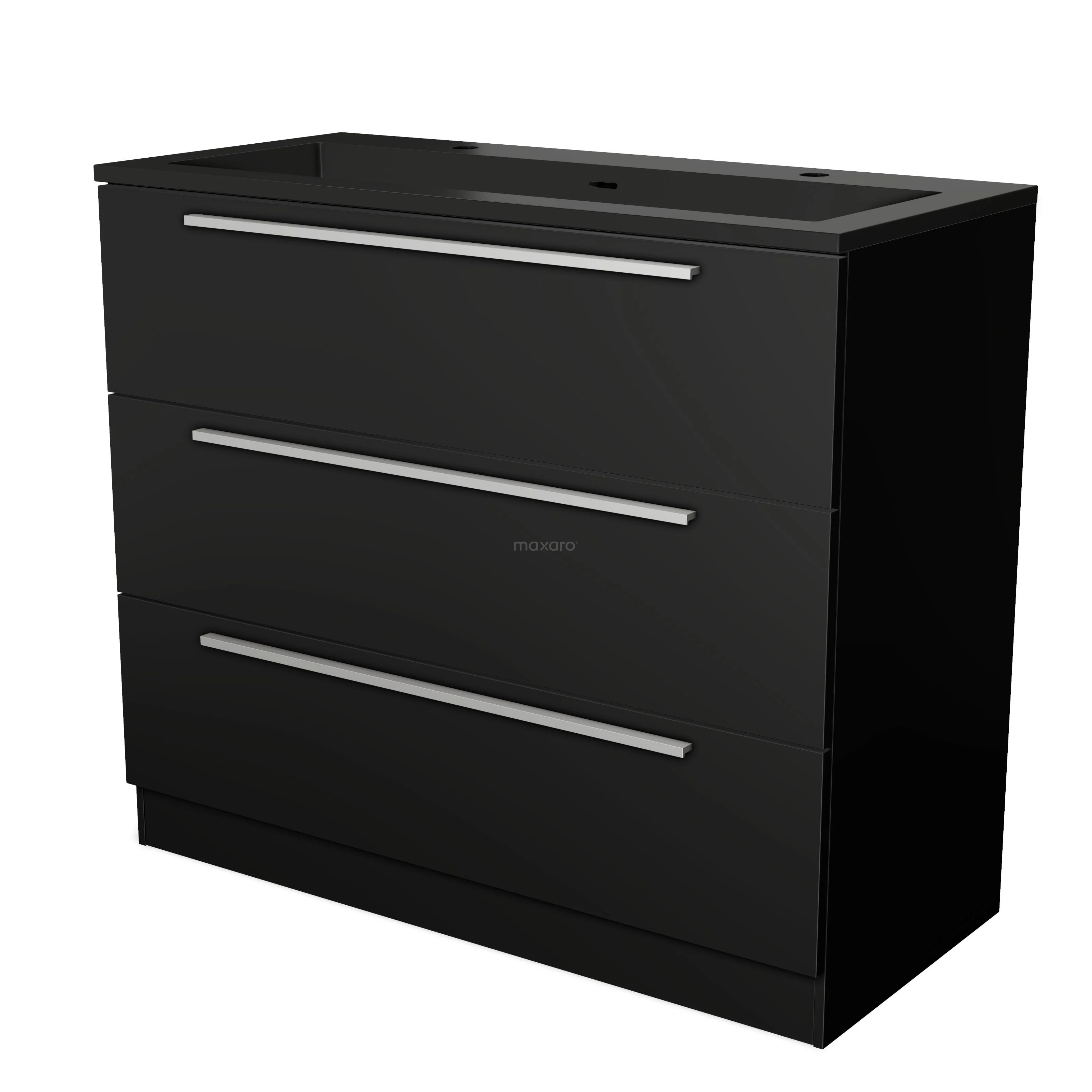 Modulo Waschtische | 100 cm Matt Schwarz Flach front Quarz 3 stehende Schubladen