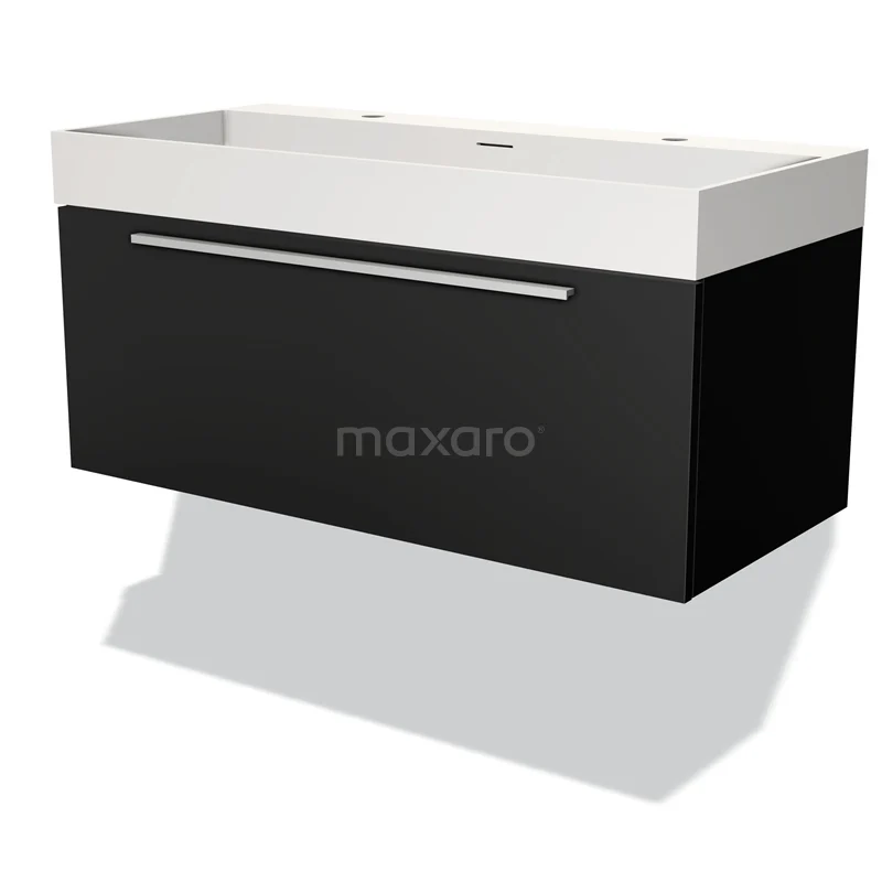 Modulo Waschtische | 100 cm Matt Schwarz Flach front Solid Surface 1 Schublade
