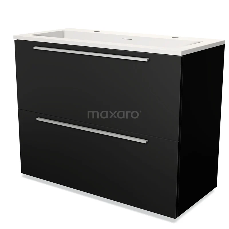 Modulo Waschtische | 100 cm Matt Schwarz Flach front Solid Surface 2 hohe Schubladen übereinanderliegend