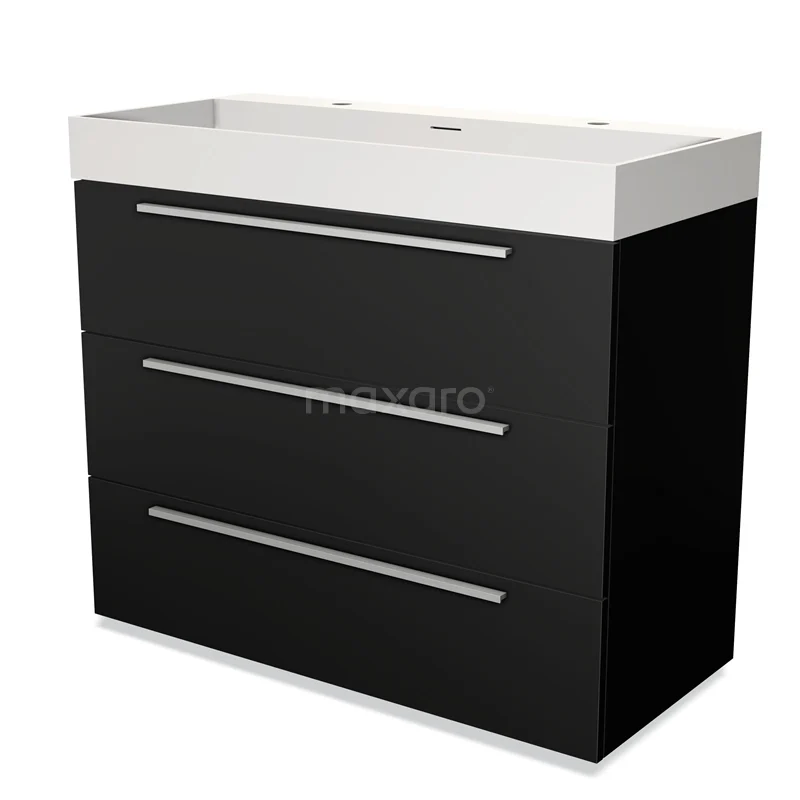 Modulo Waschtische | 100 cm Matt Schwarz Flach front Solid Surface 3 Schubladen