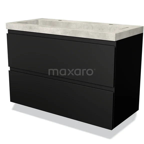 Modulo Waschtische | 100 cm Matt Schwarz Grifflos front Beton 2 übereinanderliegende Schubladen