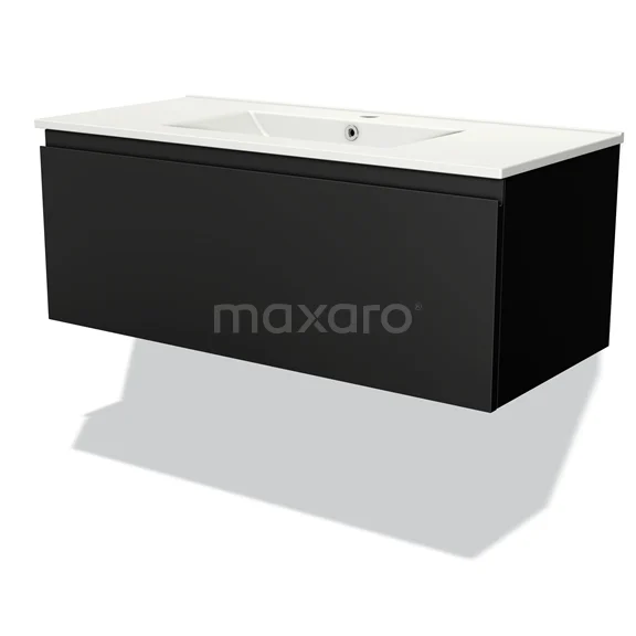 Modulo Waschtische | 100 cm Matt Schwarz Grifflos front Keramik 1 Schublade