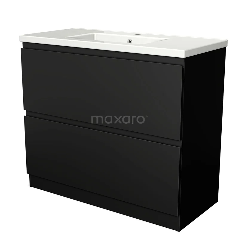 Modulo Waschtische | 100 cm Matt Schwarz Grifflos front Keramik 2 hohe Schubladen übereinanderliegend