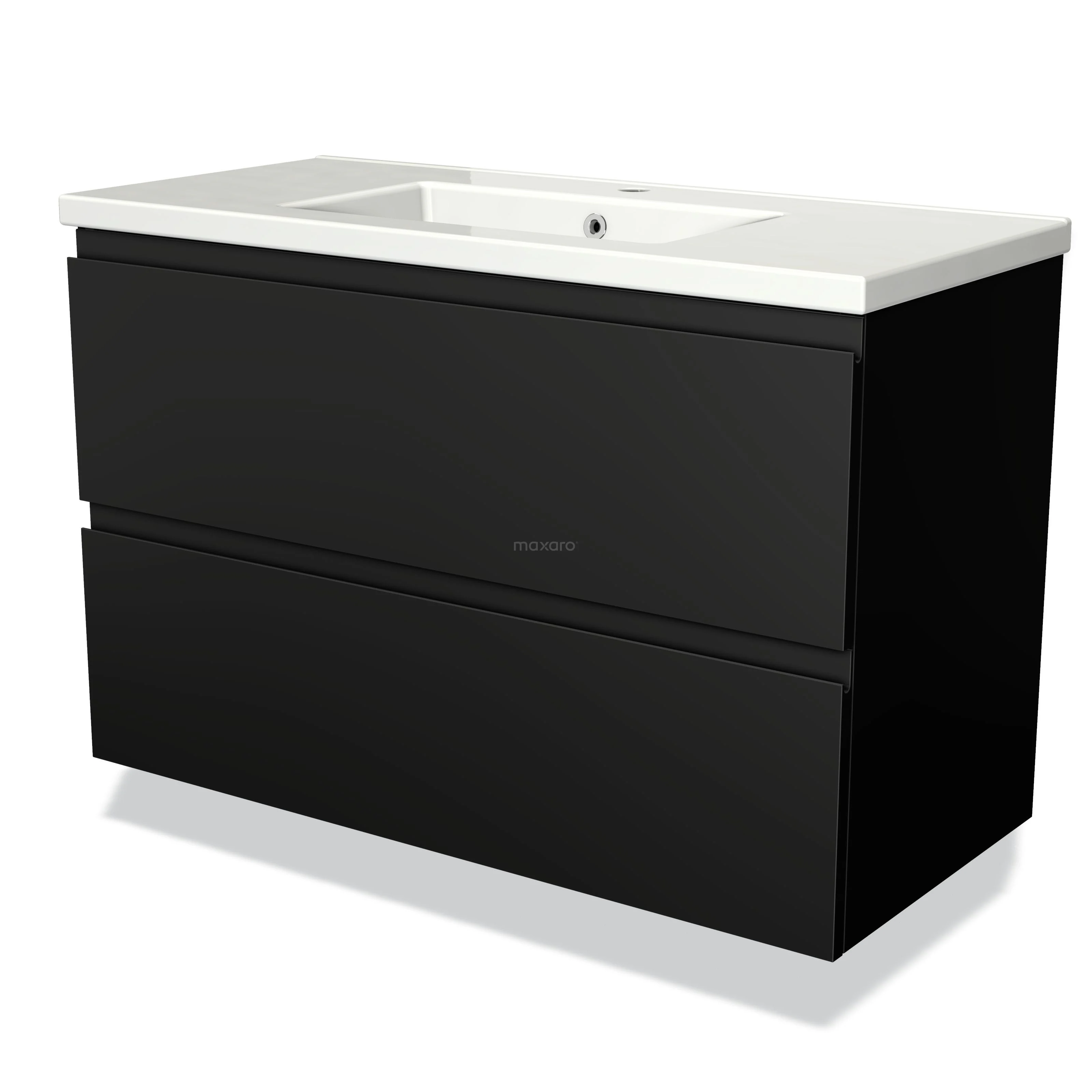 Modulo Waschtische | 100 cm Matt Schwarz Grifflos front Keramik 2 übereinanderliegende Schubladen