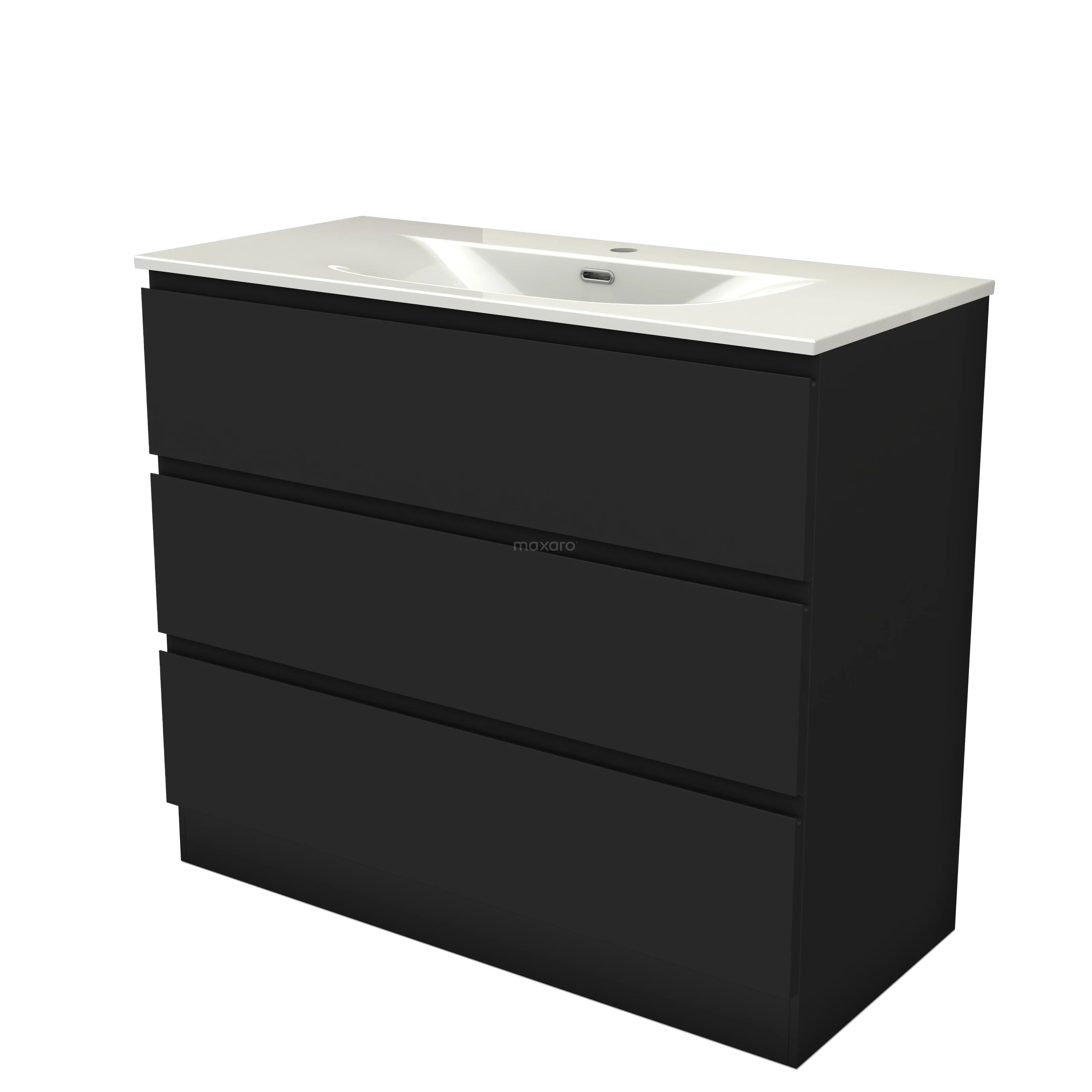 Modulo Waschtische | 100 cm Matt Schwarz Grifflos front Keramik 3 stehende Schubladen