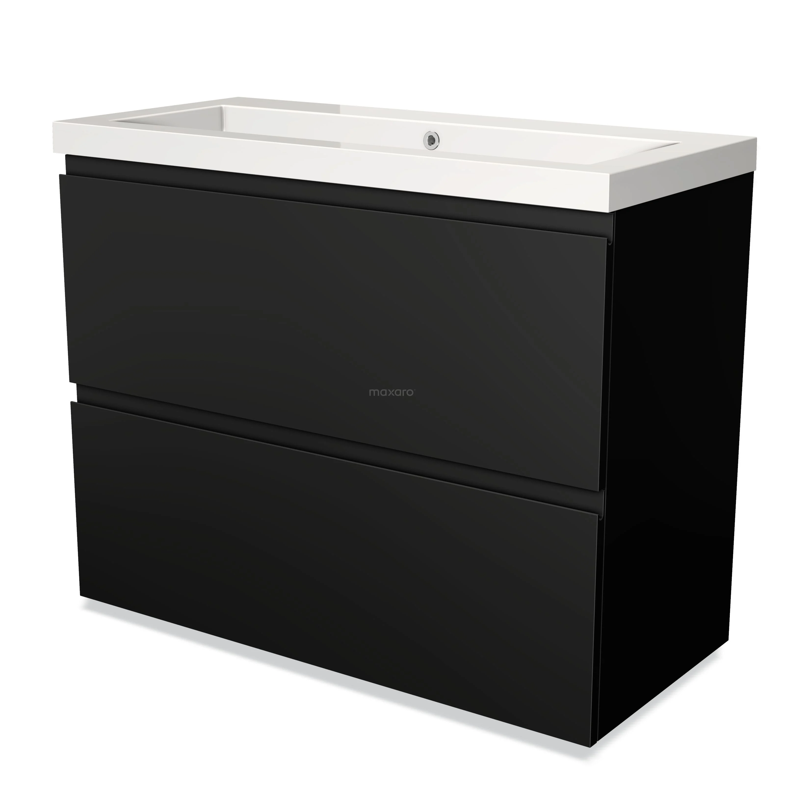 Modulo Waschtische | 100 cm Matt Schwarz Grifflos front Mineralguss 2 hohe Schubladen übereinanderliegend