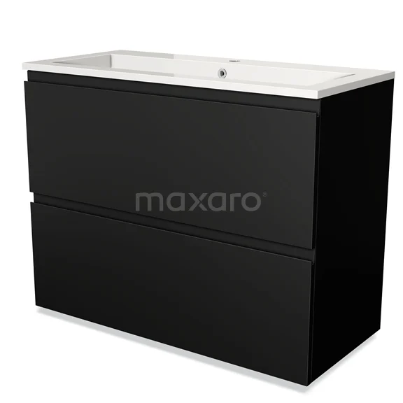 Modulo Waschtische | 100 cm Matt Schwarz Grifflos front Mineralguss 2 hohe Schubladen übereinanderliegend