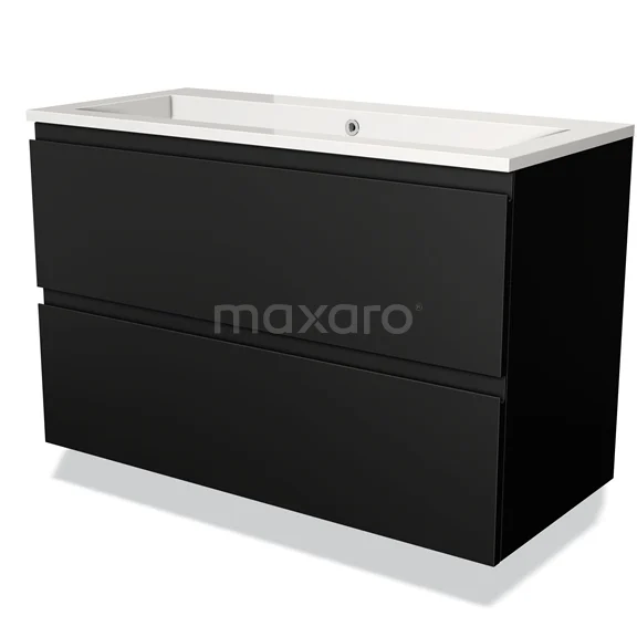Modulo Waschtische | 100 cm Matt Schwarz Grifflos front Mineralguss 2 übereinanderliegende Schubladen