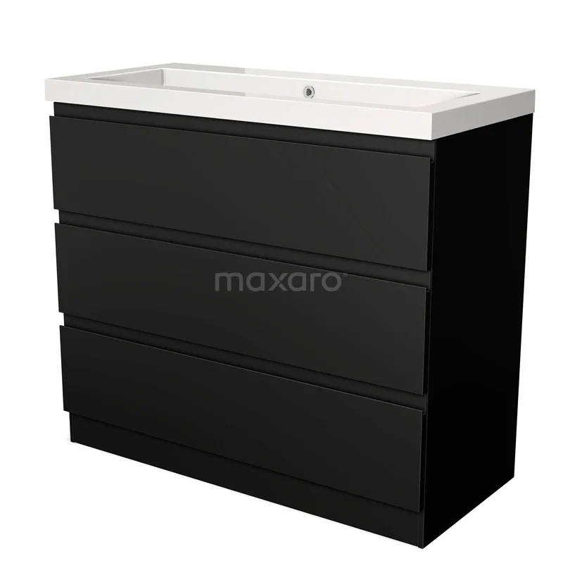Modulo Waschtische | 100 cm Matt Schwarz Grifflos front Mineralguss 3 stehende Schubladen