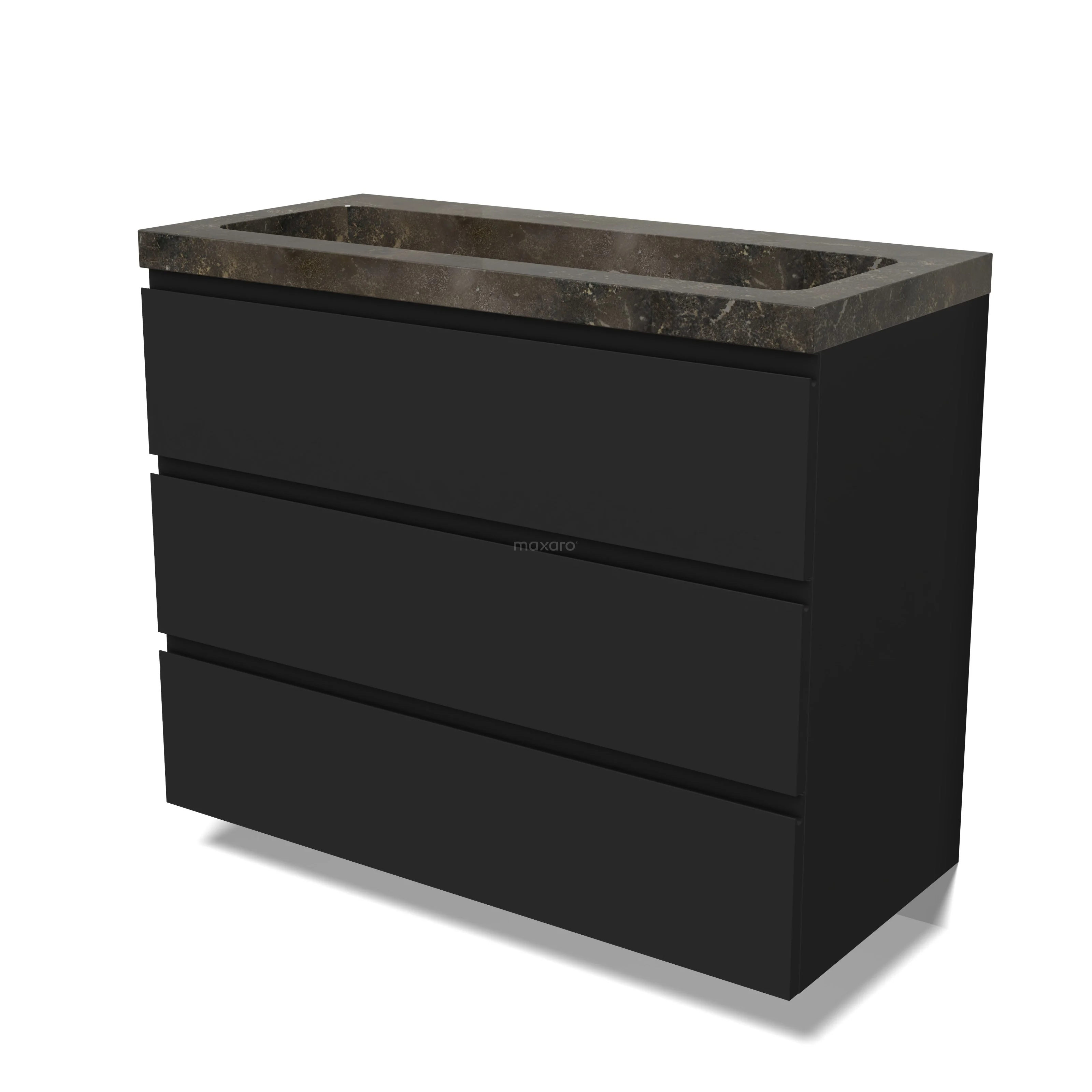 Modulo Waschtische | 100 cm Matt Schwarz Grifflos front Naturstein 3 Schubladen