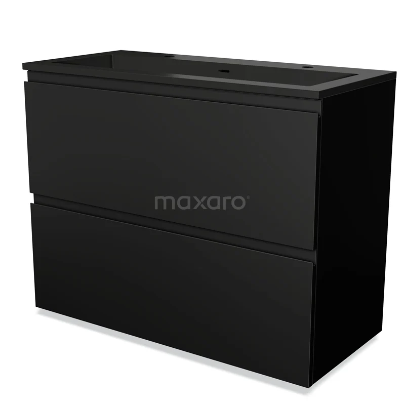 Modulo Waschtische | 100 cm Matt Schwarz Grifflos front Quarz 2 hohe Schubladen übereinanderliegend