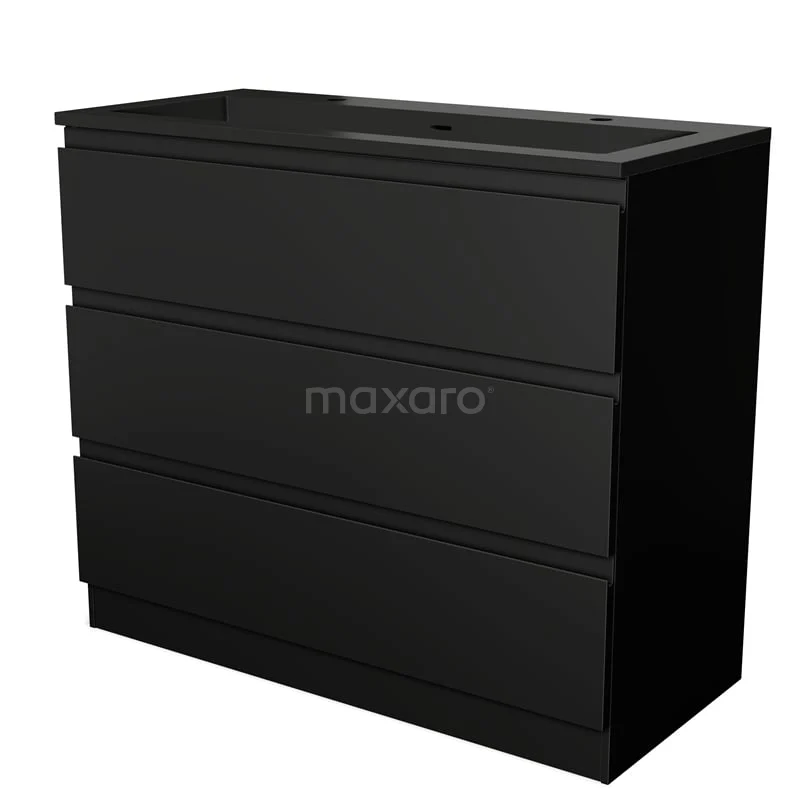 Modulo Waschtische | 100 cm Matt Schwarz Grifflos front Quarz 3 stehende Schubladen