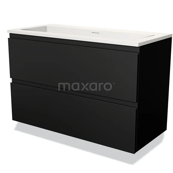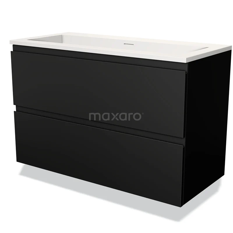 Modulo Waschtische | 100 cm Matt Schwarz Grifflos front Solid Surface 2 übereinanderliegende Schubladen