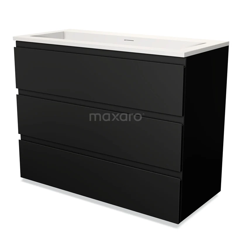 Modulo Waschtische | 100 cm Matt Schwarz Grifflos front Solid Surface 3 Schubladen