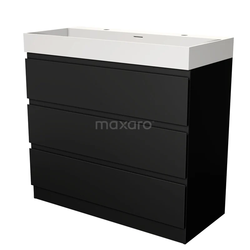 Modulo Waschtische | 100 cm Matt Schwarz Grifflos front Solid Surface 3 stehende Schubladen