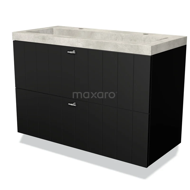 Modulo Waschtische | 100 cm Matt Schwarz Lamelle front Beton 2 übereinanderliegende Schubladen