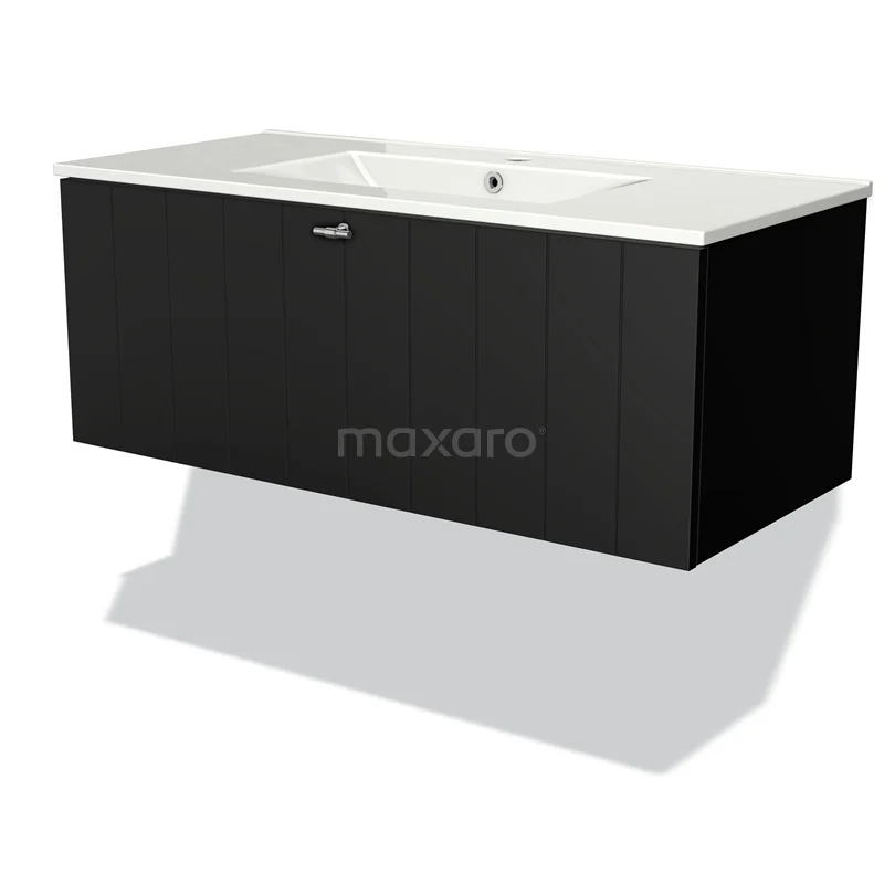 Modulo Waschtische | 100 cm Matt Schwarz Lamelle front Keramik 1 Schublade