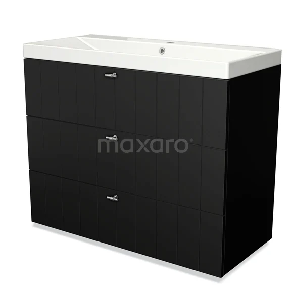 Modulo Waschtische | 100 cm Matt Schwarz Lamelle front Keramik 3 Schubladen