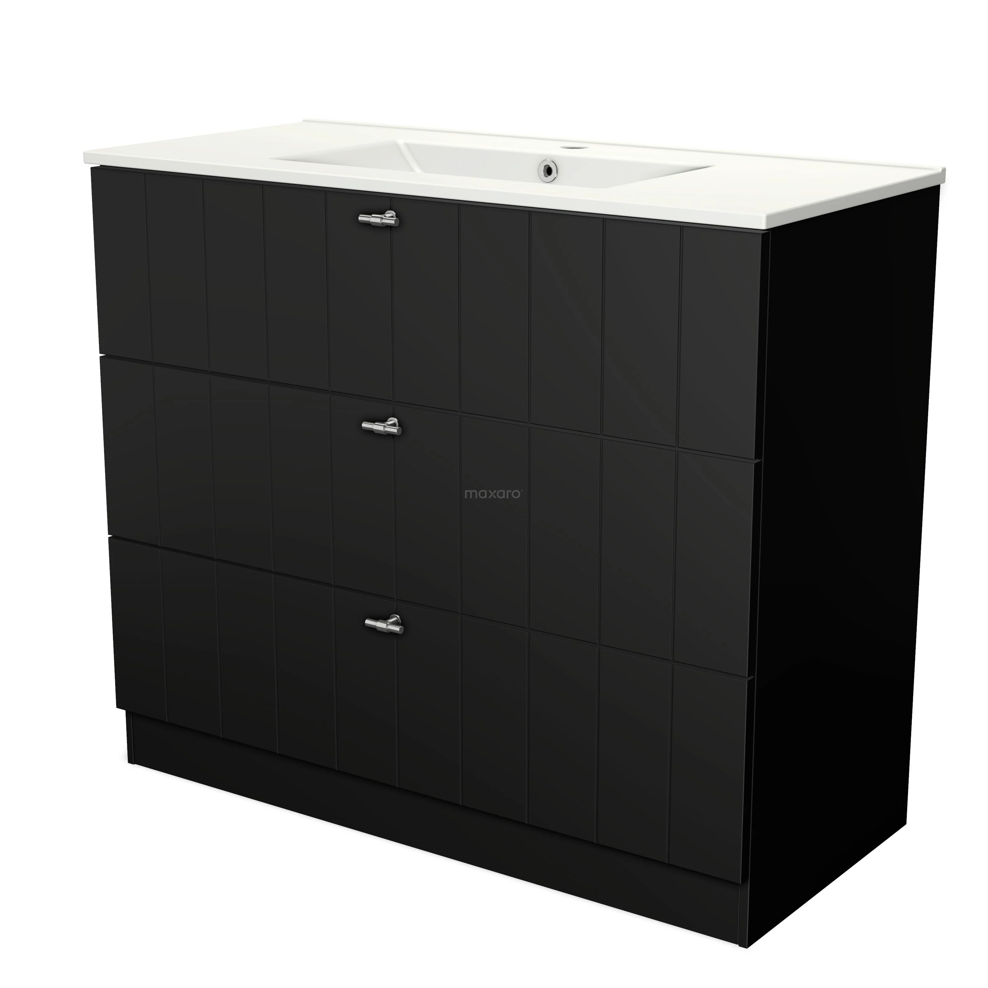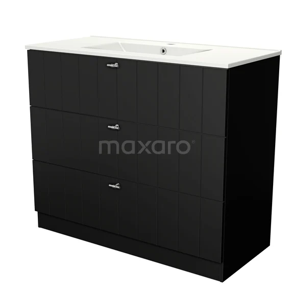 Modulo Waschtische | 100 cm Matt Schwarz Lamelle front Keramik 3 stehende Schubladen
