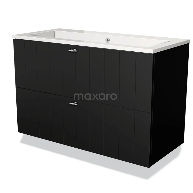 Modulo Waschtische | 100 cm Matt Schwarz Lamelle front Mineralguss 2 übereinanderliegende Schubladen